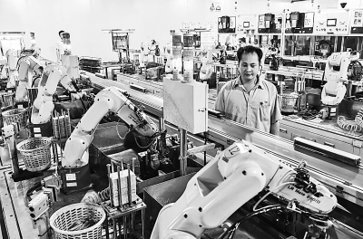 这是广东省东莞市松山湖长盈精密技术有限公司“无人工厂”的打磨机械手。该车间完成“机器换人”改造后,作业人员从650人精简至目前的30人,打磨效率提升2.5倍。在珠三角这个无所不产的“世界工厂”,正在乘着简政放权、大众创业万众创新的“春风”苦练内功,全力打造“世界工厂”升级版。新华社记者 刘大伟摄