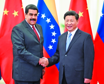 习近平欢迎马杜罗来华出席中国人民抗日战争暨世界反法西斯战争胜利70周年纪念活动。习近平指出,中方很高兴看到,中委全面战略伙伴关系之树茁壮成长。我愿同总统先生共同努力,浇灌好这棵友谊之树、合作之树,更好造福两国人民。我们要继续在涉及各自核心利益的问题上相互支持,在重大国际事务中通力配合。要在互利互惠基础上扎实推进务实合作,充分发挥现有融资机制作用,探讨开展金融、矿业、农业等领域新的合作。中方愿协助委方提升工业产能,为在更广泛领域扩大务实合作奠定基础。要加强双方文化、教育、青年等领域交流,夯实中委友好的民意基础。