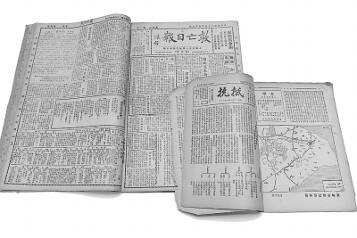 纸张已然泛黄,些许页面稍有破损,一页页翻开,纸声清脆。这薄薄的新闻纸,刊登着一篇篇掷地有声的文字,传递着报人坚决抗日的决心——