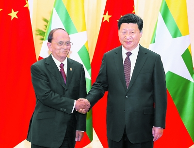 习近平强调,长期以来,中缅作为友好邻邦,始终风雨同舟,守望相助。今年4月我同你会晤时,一致同意以两国人民根本利益为重,坚持从战略高度和长远角度出发,牢牢把握中缅关系发展正确方向。中方赞赏缅方支持“一带一路”倡议,愿同缅方密切配合,统筹推进有关项目合作,为带动缅甸经济社会发展发挥积极作用。中方也愿同缅方探讨扩大边境地区正常经贸和人文交流的措施,更好造福两国人民。中方将继续为缅甸灾后重建提供帮助。