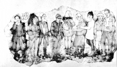 毕业之际,我想要留住四年美好的时光,怕它飞得太快,怕抓不住它。我想通过绘画,把现在的状态记录下来,记录最真实的我们。在创作画稿时,我尝试了许多种绘画手段,画了很多张构图,横构图一直是我所喜欢的一种构图。我的画面大体分为两个部分,左面四个人物为一部分,右面六个人为一部分。这样画面就有了疏密关系。我试过好多种墨色,浓墨那种浓郁的感觉不太适合我所要表达的情感,所以,最后我选择了淡色调。这种淡淡的基调,就好比我们的青春一样,匆匆而过,带有淡淡的忧伤,淡淡的别离。