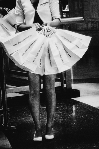 施敏杰拍照的方式,绝对不是通常按部就班地举起相机构图和对焦。他的相机多放在身体的腹、腰、胯等部位,手捏住快门,人在走动中就已经完成拍摄。拍的瞬间,对象没警觉;拍的结果,只有他心里清楚。所以,准确地说,他是用身体拍照的人。身体各部位都和图片感知联动,通过步伐的移动调整心像结构的间距和范围,快门释放的同时几乎忽略了眼睛。快门不再是视觉的侍者,而成为心灵的信使。