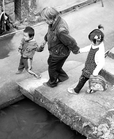 由于青壮年都在国外工作,现在留在村里的大多是老人和孩子。留守村中孩子们会通过视频聊天的方式见见远在国外的父母。