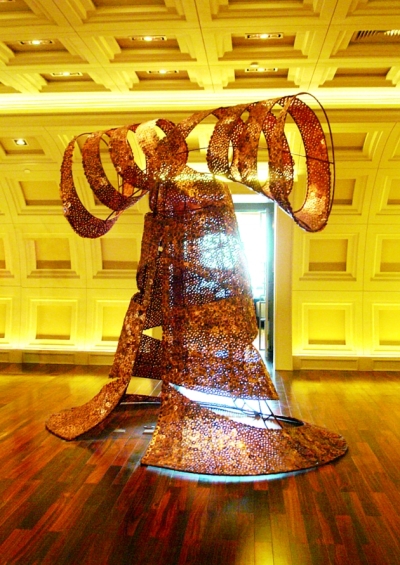 龙凤图案是中国传统文化的重要符号,我们的设计团队在北京王府井希尔顿酒店电梯厅旁设计了龙凤图案形象的金属浮雕,在酒店中餐厅入口则设计了依据中国传统服饰元素创作的圆雕,使这间酒店充满了浓郁的中国风。