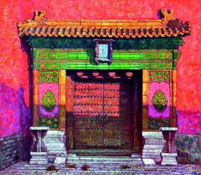 而李凯,就那么平心静气地把自己置身在世事纷杂之外,做一个冷静而睿智的观察者。他的目光扫视着,更多地停留在他曾居住、生活、工作了近十年的紫禁城红墙内外。他的画笔在这凝望中直抒着赤子般的人文情怀。