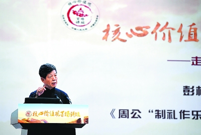 “周公制礼作乐,已经过去3000多年,但它并没有成为只能供人凭吊的‘木乃伊’,而是将中国人带入了道德理性,带到了一个比较高雅的层面上。礼的精神内核依旧具有强大的生命力,依旧可以为我们今天的道德建设和社会生活发挥积极作用。”9月17日,在“核心价值观百场讲坛”第三十场的现场,主讲人、清华大学历史系教授、中国经学研究中心主任彭林在洛阳市会议中心慷慨直言,作了题为《周公“制礼作乐”与当今的道德建设》的讲座。