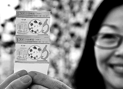 图为工作人员展示纪念邮票。 新华社记者 陈飞摄