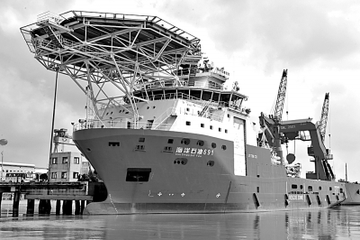 9月18日,世界顶级水平深水三用工作船“海洋石油691”在江苏启东交付。“海洋石油691”是由中海油田服务股份有限公司定制,主要服务于中国大型深海钻井平台“海洋石油981”,由罗尔斯·罗伊斯设计公司与武船集团联合设计,造价超过8亿元。图为交付的“海洋石油691”。