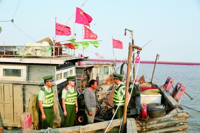 让我们大开眼界的还有“公安边防船舶动态管理系统”。这套系统应用卫星导航技术,不仅能定位辖区内渔船的位置和进出港信息,还能实时显示渔船的运行轨迹。在大连盐场边防派出所勤务指挥室,视频巡逻员王策用鼠标随机选取了一艘渔船,这艘船三天内在黄海海域的运行轨迹马上出现在屏幕上。“以前每艘渔船出海,都必须先由港口的边防官兵盖个章,回港还得再盖一次。现在进出港直接在我们这个系统里电子审批就行了,给渔民省了好多事儿。”王策告诉我们。