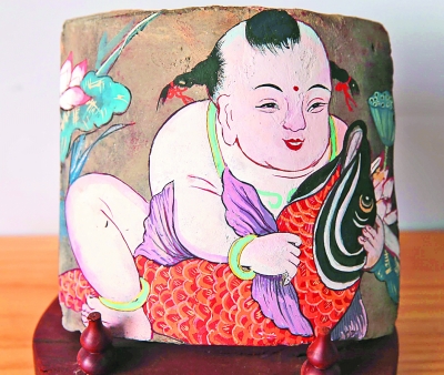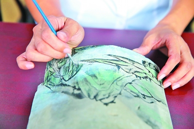 山东无棣“布瓦画”是以几百年的老民房上替换下的废旧“布瓦”为材料,按照“细描粗设”的技术要点而开发出来的一种艺术品,受到市场欢迎。图为创作者绘制“布瓦画”。本报记者 郭俊锋摄