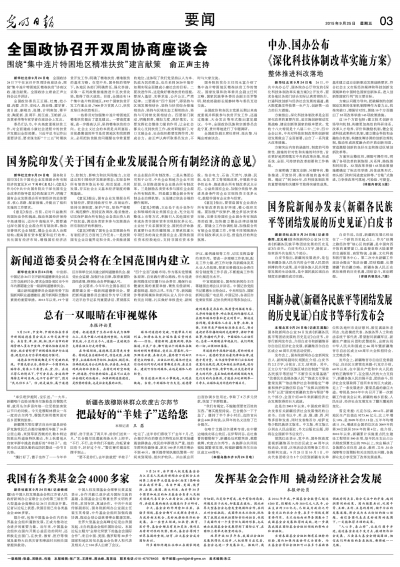 国务院印发《关于国有企业发展混合所有制经济的意见》