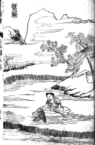 许多古代士人骨子里埋着老庄思想,把官场视为羁绊,甚至樊笼,向往自然,欲回归江湖,特别当他们在现实中碰到种种不如意的事情之后,羡慕渔翁的那一份平淡和悠闲,那一份无拘无束和自由自在,于是笔下便往往冒出“蟹舍”:宋·苏庠说“东邻蟹舍肯著我,请办蓑笠悬牛衣”(《赋王文儒癯庵》),宋·陆游说“数椽蟹舍偿初志,九陌尘衣洗旧痕”(《秋雨顿寒偶书》),宋·范成大说“我亦吴淞一钓舟,蟹舍飘摇几风雨”(《倪文举奉常将归东林出示绮川西溪二赋辄赋长句为谢且以赠行》),清·钱谦益说“稍待秋风到芦荻,共寻蟹舍到鱼舠”(《夏日偕朱子暇憩耦耕堂次子暇访孟阳韵三首》),清·吴伟业说“芒鞋藤杖将迎少,蟹舍渔庄生事微”(《和王太常西田杂兴韵》)等,或躬身实践,或灵光一闪,或矫然作态,不能否认的是他们头脑里确有超脱世俗生活的幽远怀想,不想被功名困扰的屏蔽愿望,如此,蟹舍,作为渔业形态的一个实际标志,又兼而成了追求精神慰安和独善其身的一个文化符号。