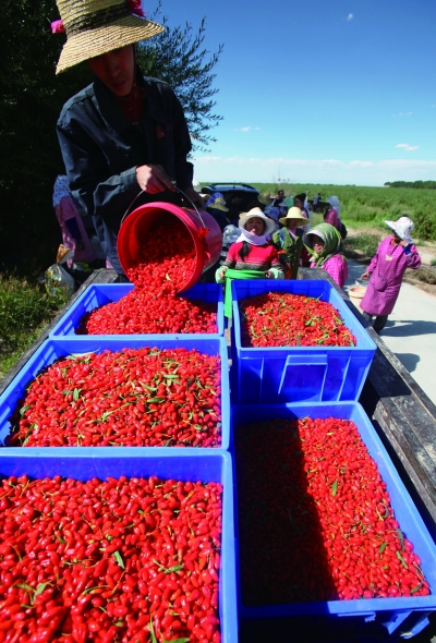 枸杞丰收,青海省格尔木市。 郑宇 摄