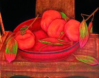 漆盘中的柿子(漆画) 乔十光