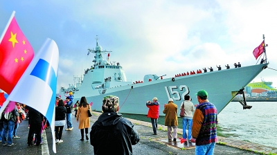 当地时间9月25日上午,中国海军第20批护航编队抵达芬兰的赫尔辛基港,开始对芬兰进行为期5天的友好访问,这是中国海军舰艇首次访问芬兰。此批护航编队由导弹驱逐舰济南舰、导弹护卫舰益阳舰和综合补给舰千岛湖舰组成,之前已成功访问了苏丹、埃及和丹麦三国,芬兰是其环球访问的第四站。图为济南舰在中芬两国欢迎队伍的欢呼声中缓缓驶入赫尔辛基港。本报驻赫尔辛基记者 卞晨光摄