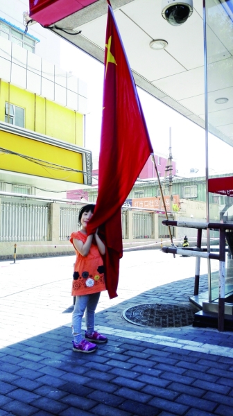 | 外孙女今年三岁多,每次看见五星红旗都会说:“这是我们国家的国旗!” 王署波摄 |