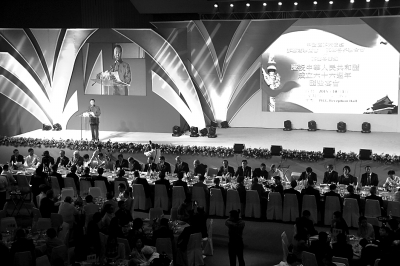 10月1日,中国驻菲大使馆、菲华各团体,在菲律宾国家会议中心举办庆祝中华人民共和国成立66周年国庆宴会。菲华各界代表1000余人出席。图为中国驻菲律宾大使赵鉴华在庆祝活动上致辞。本报驻马尼拉记者 付志刚摄