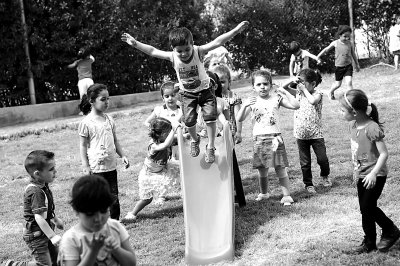 9月30日,在埃及首都开罗“十月六日城”,叙利亚学生在“茹比”私立学校的草坪上玩耍。9月下旬,埃及境内的公立学校迎来秋季新学期,与此同时,位于首都开罗西南部的“十月六日城”,一家由叙利亚商人侯赛姆·茹比开办的私立学校也投入使用,超过200名在埃叙利亚学生走进课堂。新华社发(艾哈迈德·戈马摄)