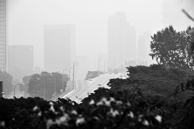 10月5日,烟霾笼罩新加坡滨海湾一带。 当日,新加坡三小时空气污染指数在下午2时达183,属“不健康”水平。
