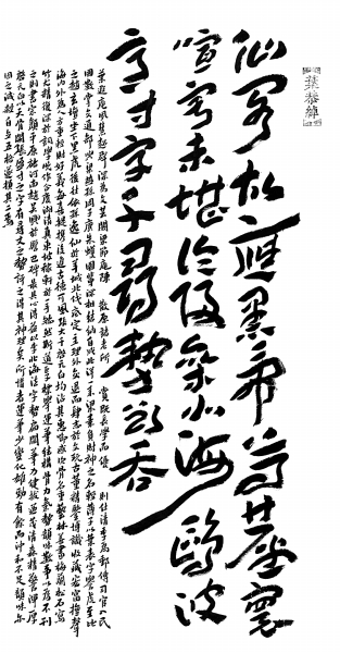 诚然,“文墨俱美,诗书贯通”是李一兄的美学追求,也是他迥异于一般文人墨客的价值所在。实际上,他的“一以贯之”理想,其辐射度或许比他自己预计的要大得多。比如,南北“一以贯之”,他出生于山东,学习工作于北京,其学术、艺术渊源却在浙江,据他自述,他早年受沈尹默影响,后转习章草,由王遽常而沈寐叟,诗歌则非常欣赏龚自珍,这种文化上的南北交融,对他而言是春风化雨式的。这次他带给浙江的,我相信也不会仅仅是书法和诗文,还会有南北交融的精神感悟,“一”展学人风采。再比如,作为一位国家核心期刊的主编,作为一位社会活动繁多的艺术理论家,他能够放到个人创作上的时间是少之又少的,理论与实践的结合,知行合一,也正是他“一以贯之”的重要表现形式。这种努力把自己的聪明才智用到为社会公服务众、为文化事业服务的做法,也恰恰是将艺术上升到“道”的范畴,从而“一以贯之”的绝佳途径。