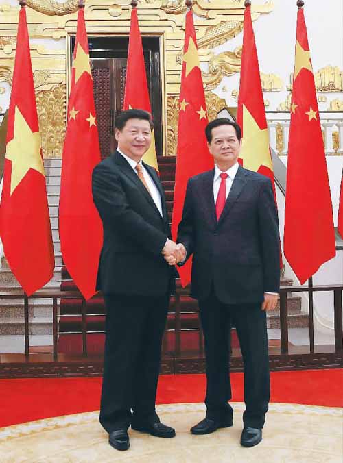 习近平强调,着眼未来,无论国际风云如何变幻,双方都应该坚持从战略高度和长远角度看待和处理中越关系,共同建设命运共同体,造福两国人民,为本地区乃至世界的稳定和发展作出贡献。双方在政治上要把握好大方向,加强战略沟通,增进政治互信,确保中越关系始终沿着正确轨道前进。在经济上要抓好务实合作,以对接发展战略、落实大项目合作为抓手,共同开创中越经贸合作新局面。双方要加紧协商“一带一路”和“两廊一圈”框架内合作,协调推进两国多领域产能合作,集中精力做好几个有代表性的大项目,大力推动两国边境合作。