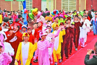 北京农业大学附属小学第一届双语戏剧节11月17日圆满闭幕,孩子们充分感受到了戏剧带来的快乐。戏剧节历时26天,在中国少年儿童新闻出版总社阅读推广中心教育戏剧专家的指导下,学校的老师和同学们由认识戏剧、排演戏剧,到最后在舞台上展现自我、感知人物内心世界,学会了在戏剧中领悟深刻的人生道理。闭幕活动分为18个活动会场,围绕戏剧和阅读展开,由央视少儿频道主持人芝麻哥哥主持。张圆摄/光明图片