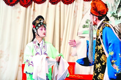 在云南昆明篆新农贸市场内,有一个破旧的小“剧场”。每天下午2点,昆明滇剧花灯团都会在这里演出。昆明滇剧花灯团20世纪80年代成立,现有20余名成员,大部分是老年人。滇剧是云南主要地方剧种,历史悠久,表演既承袭中国戏曲传统,又有浓郁的云南地方特点,2008年被列入第二批国家非物质文化遗产保护名录。图为日前昆明滇剧花灯团演员在表演滇剧《妻与妾》。