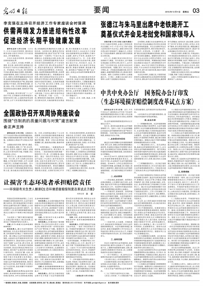 中共中央办公厅 国务院办公厅印发《生态环境损害赔偿制度改革试点方案》