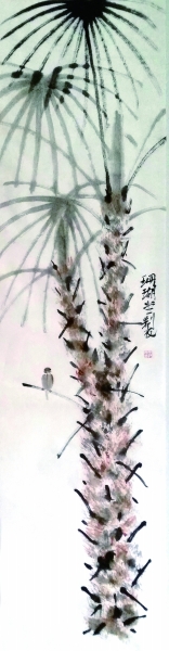 说到画棕榈,白石老人的棕榈画得最好,国画的各种笔法几乎都在这株树上,先用大笔把主干揉出,要把棕榈树干的那种毛茸茸的感觉画出来,然后再用大笔蘸着赭石再揉一遍,笔照例要干一些,几乎是山水的皴法,你也画棕榈,这个你知道。画棕榈,妙在老干上的残梗,用中号笔,蘸浓墨,一笔下去,一头在树干之外,一头在树干里,树干之外的墨是挺硬而有飞白,树干里的是涸散而水墨味道极妙,棕榈树的叶子像把打开的扇子,白石老先生是先以淡墨画两片叶子,趁其未干再用浓墨画一片大叶,浓墨淡墨一时互相破开,极是好看。画棕榈,宜用四尺对开纸,宜只画一株棕榈,亭亭立在那里才好看,补麻雀补小鸡都不好,一株棕榈,几乎把中国国画的笔法墨法都用到,远比时人喜欢的牡丹图好看。
