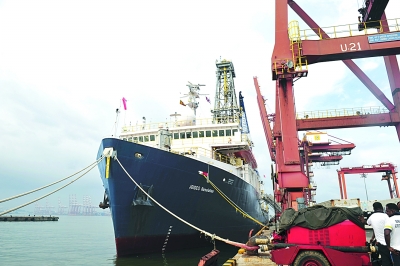 12月2日,美国“决心”号钻探船停靠在斯里兰卡科伦坡的港口。打超深钻井,钻穿地壳,直接“触摸”到地壳与地幔的边界,这是全世界地球科学家的理想。美国、英国、中国等12个国家的30名科学家已登上美国“决心”号钻探船,准备在西南印度洋开展打穿地球壳幔边界的第一次大洋钻探。