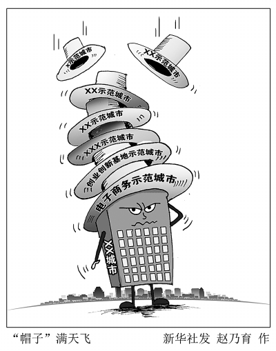 一个时期以来,各类以试点、示范、基地等头衔为名的“帽子”满天飞,一些地方更是争相抢夺。专家指出,“试点帽子”长期泛滥的现象背后,暴露出过犹不及的政府之手。这种过多、过度的行政干预,往往容易造成资源错配,破坏市场的公平和秩序。 赵乃育/新华社