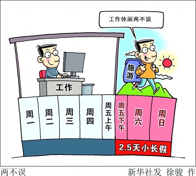 “‘2.5天小长假’是善政,但方式方法可以更灵活。”胡静建议,两天半假期在实施中要循序渐进,不能一刀切。“可以先分行业、分工种、分季节试行,如5天工作任务能在4天半之内完成的行业和工种,实行周五下午或周一上午加周六、周日两天半假期。”