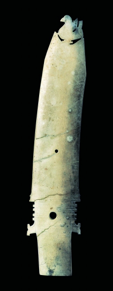 玉璋在三代是重要的礼器,《周礼》有“玉作六器以礼天地四方”之说,六器为璧、琮、圭、璋、璜、琥,璋列其中。《周礼·大宗伯》说,“以赤璋礼南方”,用红色的璋祭祀南方神,是因古代以南方为赤色。《尚书·顾命》说“秉璋以酢”,《礼记·祭统》说祭祀时“大宗执璋”,透露了玉璋的一些用法。