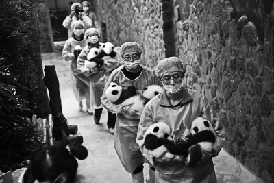 | 成都大熊猫繁育研究基地的新生大熊猫集体亮相。新华社记者 薛玉斌摄 |