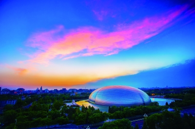 绚烂的晚霞映照在北京国家大剧院的穹顶之上,远远望去如同星外来客的宇宙飞船,为这个经典的椭圆形建筑增添了神秘感与无限魅力。这幅照片来自光明网主办的2015“我眼中的经典设计”摄影作品征集活动,由网友“飞舞心情”创作。