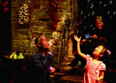 | 山村的天伦之乐。刘世兴摄 |