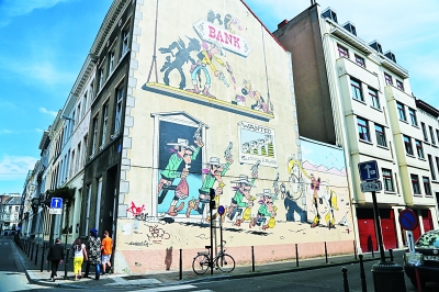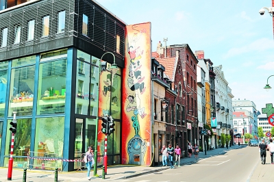 在比利时首都布鲁塞尔的老城区,有一条长达数公里的“动漫墙”,艺术家们巧妙地将一些世界著名动漫故事与街景融为一体绘制在墙上。游客按“指示图”便可以欣赏到数十幅赏心悦目的动漫故事画面。比利时每年出版5000多种动漫作品,丁丁、斯皮鲁、蓝精灵等都是耳熟能详的动漫人物。本报驻布鲁塞尔记者 刘军摄