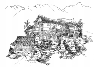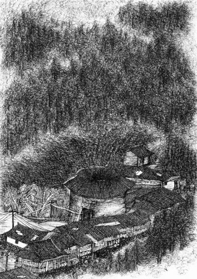 2007年10月,我在四川达州我的老家画了这幅《巴山风雪》,用一支普通的钢笔,画出我再熟悉不过的大山和院落,画出风雪过后山村的宁静。2011年9月,整理出版钢笔画作《诗意的栖居》时,我给这幅画配了几行文字: