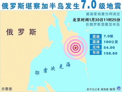 俄罗斯堪察加半岛发生7.0级地震。 新华社记者 胥晓璇编制
