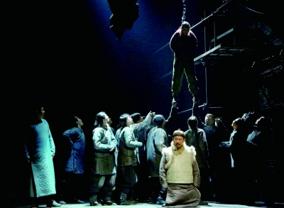 这次陕西人艺排演《白鹿原》,相距北京人艺的首演已近十年,根据这些年演出中听到的观众反应,我和导演胡宗琪都认为有必要做一点调整。在胡导的整体构思下,我们在文本上主要做了两点修订。一是从总体篇幅上进行了精简(包括减掉了一个次要人物徐秀才),二是为了便于交代时代背景和主体事件,增加了众村民的“议论”。这一点十分重要,因为它不仅解决了“叙事”(交代背景)的问题,更重要的是它发挥出古希腊悲剧中“歌队”的功能,在“叙事”中不停地转变身份(跳进跳出),在全剧节奏控制、感情渲染上起到了至关重要的作用。