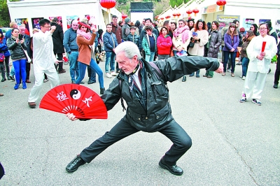 我驻意大利使馆1月30日举行“欢乐春节”庙会活动上,一名意大利太极爱好者学打太极拳。本报记者 陈晓晨摄