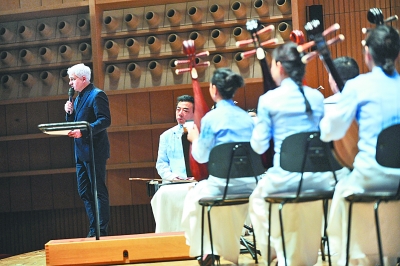 2月1日,在奥地利北部城市林茨的布鲁克纳音乐厅,布鲁克纳音乐节艺术总监汉斯-约阿希姆·弗赖向观众介绍中国管弦乐。当日,来自中国歌剧舞剧院民族管弦乐团的音乐家们在奥地利林茨布鲁克纳音乐厅奏响中国新年音乐会。