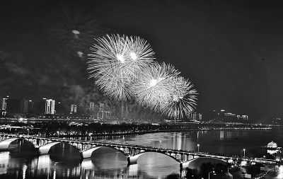 除夕夜,长沙在湘江橘子洲举办音乐焰火晚会。新华社记者 龙弘涛摄