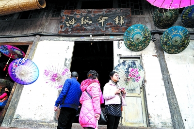 离古镇大门不远,一家油纸伞铺聚满了人。梅兰竹菊、荷塘月色……一幅幅的精美图案吸引了许多游人的目光。“这些油纸伞都是我亲手绘制的,好多人都专程来买,有的还带到国外。”画师陈银道说,油纸伞是国家级非物质文化遗产,有人喜爱,他作为传承人深感自豪。