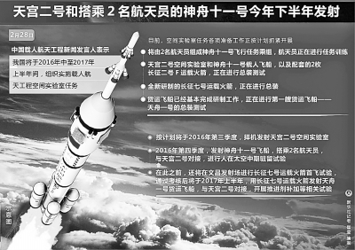 天宫二号和搭乘2名航天员的神舟十一号 今年下半年发射