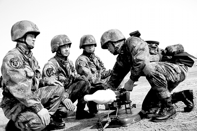 为提高导弹专业训练水平,新疆军区某团导弹连教练员常在一起研讨教学训练。图为他们各抒己见,研讨模拟器材的使用方法。冯业林摄