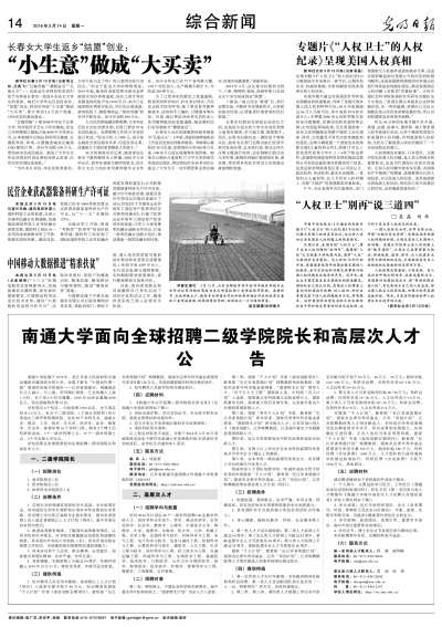 南通大学面向全球招聘二级学院院长和高层次人才公告