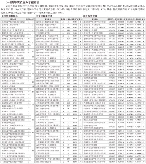 中国人民大学人文社会科学学术成果评价研究中心根据2015年度复印报刊资料学术系列刊的全文转载数据,从转载量、转载率和综合指数3个量度,分别进行了期刊排名和机构排名。这个至今已连续16年在《光明日报》《中国新闻出版广电报》等媒体公开发表的转载排名,基本客观地反映了中国人文社科学术期刊、教学科研机构的学术研究水平和状况,受到了社会的广泛关注和高度重视。