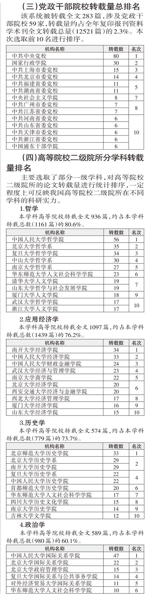 由于受报纸版面的限制,本报只发布部分排名,全部排名情况发布在书报资料中心网(www.zlzx.org)、中国人民大学网、光明网、中国高校人文社会科学信息网等网络媒体。