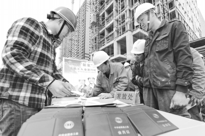 3月30日,在安徽省合肥市百利广场项目工地,农民工在填写个人信息申请加入工会。当日,合肥市蜀山区红四方社区为辖区工地上的101名农民工集中办理工会入会手续,并安排专人向农民工普及入会后劳动就业、工资报酬、社会保障、安全生产、困难帮扶等方面的知识,增强农民工对工会组织的了解和归属感。新华社记者 杜宇摄
